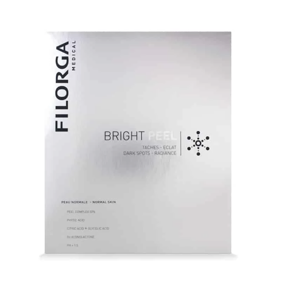Filorga Bright Peel is a medical-grade chemical peel designed for normal skin. It is manufactured by Filorga Laboratories in France and works to brighten and smooth the skin’s tone by allowing the dermis to regenerate new, younger cells. This product is intended for use by licensed professionals only, and each package contains 1-100mL bottle, a dosing tube, and a brush. This peel makes the skin look younger by brightening the skin, making dark spots and wrinkles appear less visible. By using ingredients that specifically target features in the facial skin that contribute to the appearance of ageing, this product gives patients a non-surgical, non-intrusive option for obtaining refreshed skin.