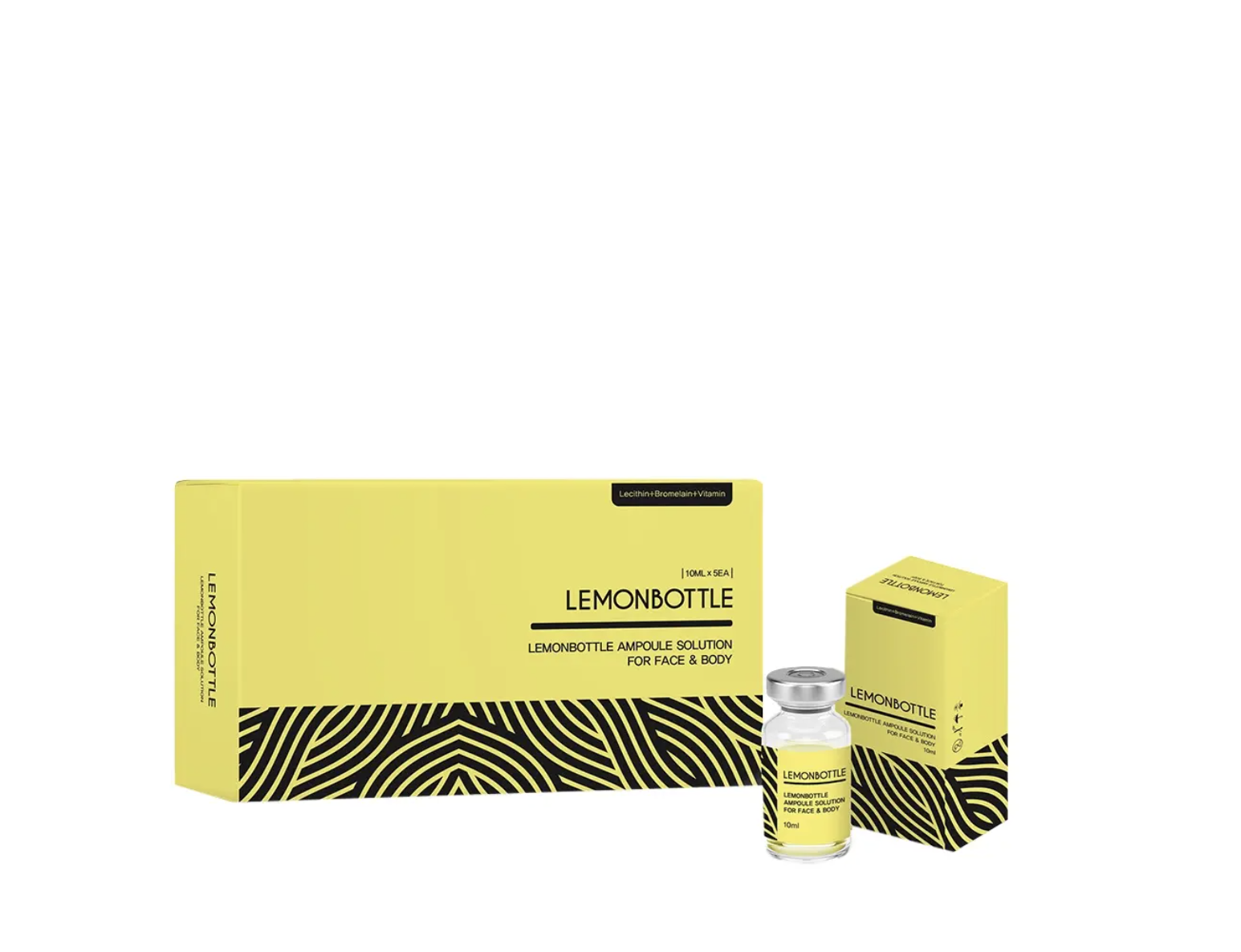 Lemonbottle Ampoule Solution is a ground-breaking lypolitic formula for body & face. It combines Riboflavin, Lecithin, and Bromelain to stimulate the body’s metabolic processes, and to target areas such as the double chin, love handles, hips, and also the abdomen and legs.
